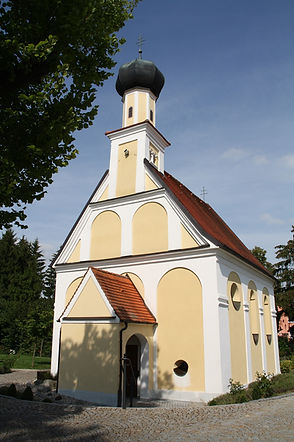 Der Beginn der zweiten Zeile konnte als Kürzung des Titels „Graf von Kirchberg von Weißenhorn“ aufgelöst werden. Die erste Zeile konnte allerdings nicht als Namenskürzung eines Familienmitglieds der Fugger aufgelöst werden. Auch im Fürstlich und Gräflich Fuggerschen Familien- und Stiftungsarchiv in Dillingen befinden sich keine Unterlagen, durch die sich eine Stiftung der Kapelle nachweisen lässt. Letztlich kann man also nur vermuten, dass sich die Grafen Fugger am Bau beteiligten, was auch die verhältnismäßig prunkvolle Ausführung erklären würde. Die Fugger besaßen viel Eigenbesitz in der Gegend um Bäumenheim und hatten zu diesem Zeitpunkt das Gebiet südlich von Donauwörth, die sogenannte Reichspflege Wörth, inne. Die Übernahme der Reichspflege durch Marquard Eustach Fugger im Jahr 1687 und seine Heirat mit Anna Franziska Felicitas Fugger am 18. Juli 1689 - zwei markante Ereignisse in der Erbauungszeit der Kapelle – könnten mit einer Stiftung in Zusammenhang stehen.